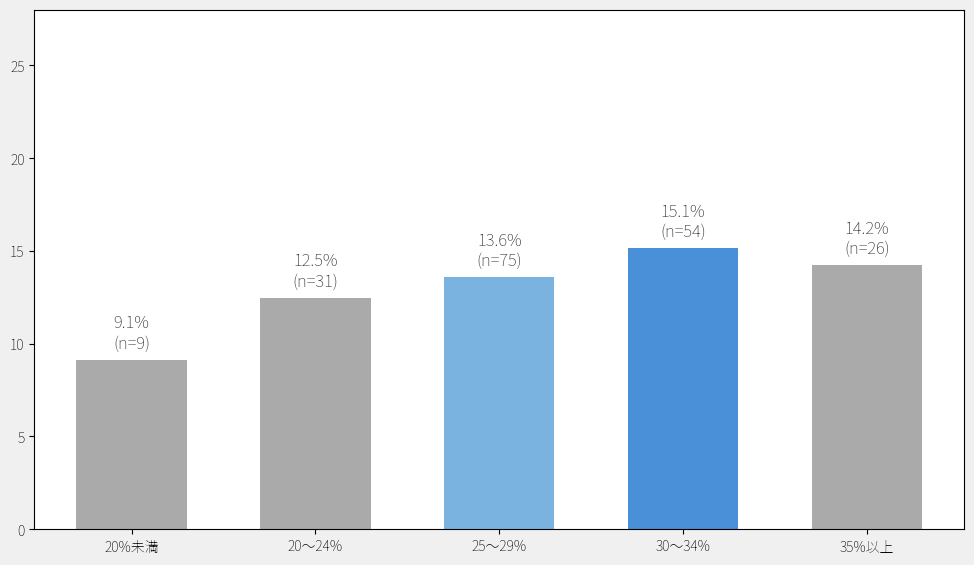 ・HS%は25〜34%帯でCL%が最も高く、35%以上ではやや低下する逆U字傾向が見られた。