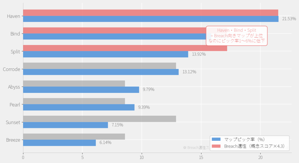 | Raze | 38.67% | 39.00% | +0.33pp | 14.00% | −24.67pp | 独自減少(パッチ要因) |