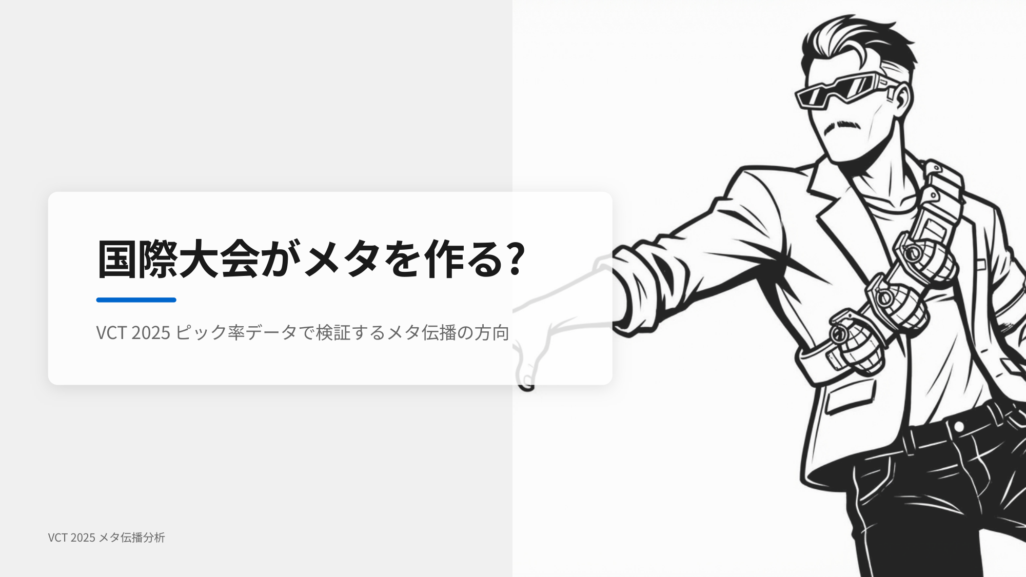 VALORANTの競技シーンにおいて「国際大会で勝ったチームの構成が翌シーズンのスタンダードになる」という体感をお持ちの皆さんも多いのではないでしょうか。しかし、その直感はデータで裏付けられるのか——あるいは逆に、リージョナルリーグで育まれたメタが国際大会に「持ち込まれている」だけなのか。この問いに定量的な回答を出すことが今回の目的です。