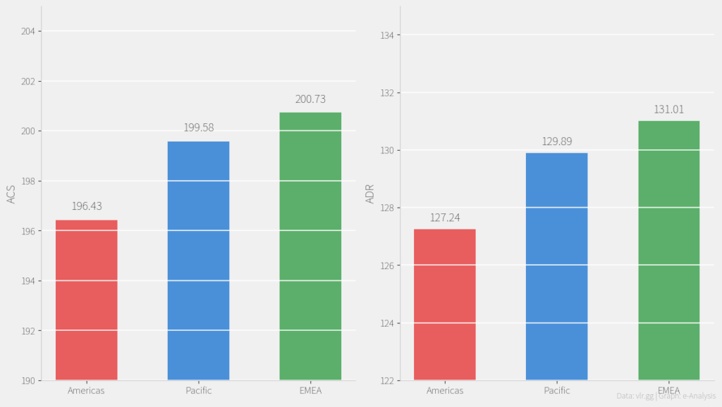 • ACSとADRの最高値はEMEAであり、Pacificが最高ではない。EMEAがACSで+4.30pt、ADRで+3.77ptほどAmericasを上回っています。